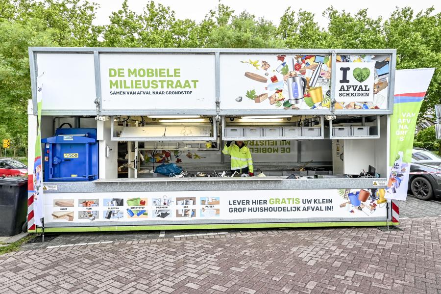 Kleine huishoudelijk spullen kun je de komende maanden ook gratis inleveren naast de markt aan de Rivierweg, bij De Milieukraam. Handig als je toch het winkelcentrum of de markt bezoekt. Alleen spullen die in een grote boodschappentas passen kun je inleveren bij de Milieukraam.