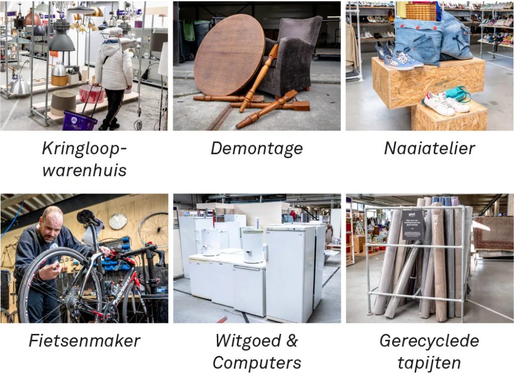 De missie van Het Goed is werk maken door hergebruik. Dit bereiken we door gebruikte spullen een tweede leven te geven. Alle gebruikte spullen die dagelijks bij de kringloopwarenhuizen worden gedoneerd, worden beoordeeld en gesorteerd. De bruikbare spullen worden verkocht in de winkel. De spullen die niet direct bruikbaar zijn in de kringloopwinkel, worden verdeeld over de andere afdelingen binnen het circulair ambachtcentrum.